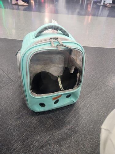 Was not too sure how my cat was going to react to this bag but she ended up really enjoying it. She now even hops into the bag when we are getting ready to go . It’s big cozy and spacious for her. Easy to use. I love all the zippers components! While we walk she even loves to stick her head out the side at times ! Definitely well made and durable! Quality is phenomenal so worth it WE LOVEEE!!
